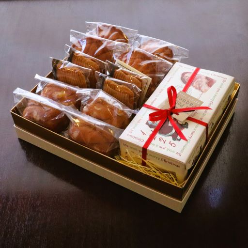 クリスマス限定のシュトーレンと、焼菓子12点(コキーユ、カロテン、ラド各4点)をつめあわせました。