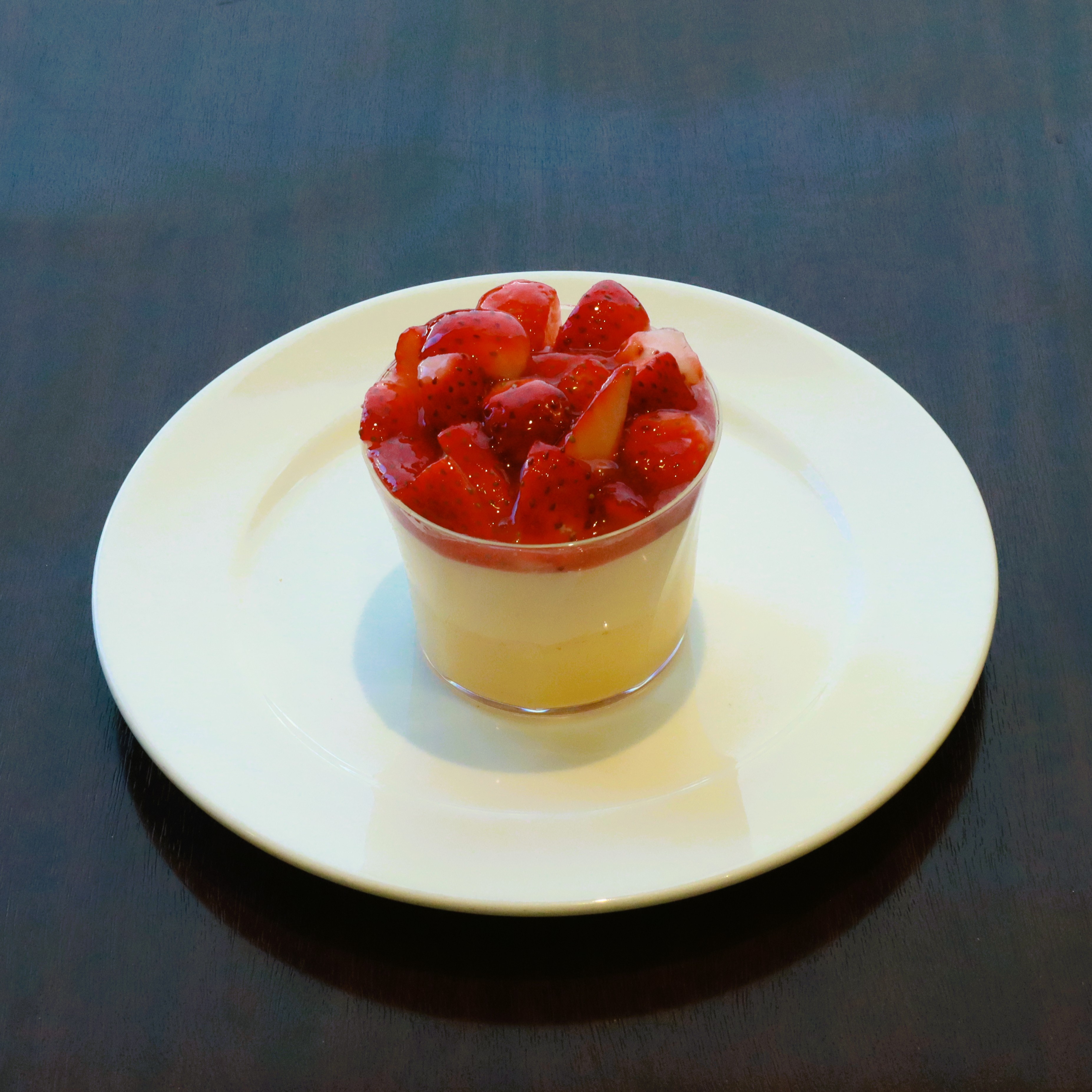 いちごのゼリー、チーズのパンナコッタ、いちごソース、いちごを重ねました。