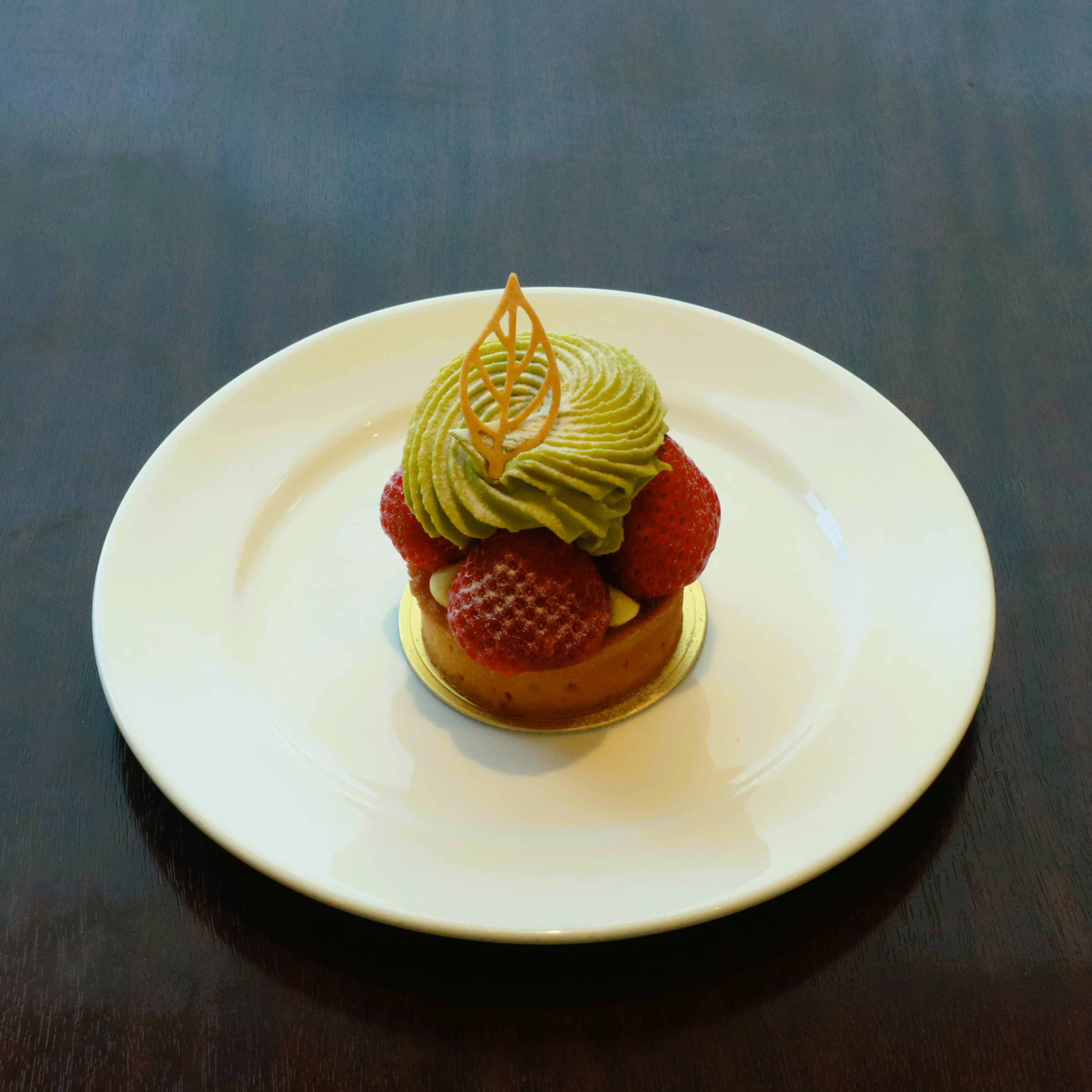 サクサクのアーモンドタルトに、フランボワーズジャム、カスタードクリーム、いちご、ピスタチオクリームを重ねました。